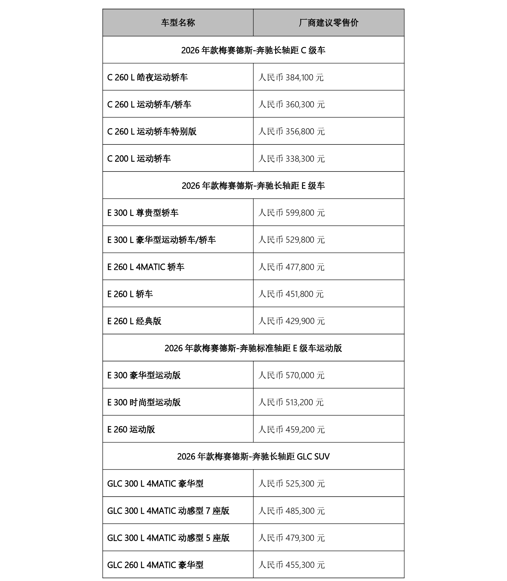 一直以来,梅赛德斯-奔驰始终洞察并回应中国客户日益丰富的出行需求。本次核心车型升级上市,多款车型智能再进化、舒适再进阶、车型选择更丰富。未来,梅赛德斯-奔驰将以领先的智能豪华体验和进阶的产品价值,陪伴中国客户驶向更从容、更令人向往的出行生活。