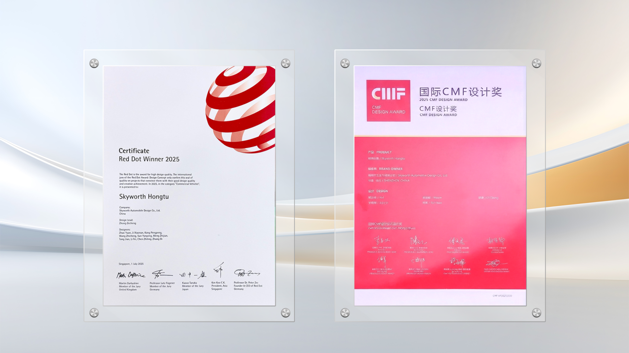 创维鸿途,是开沃集团集前沿科技与卓越设计之力打造的战略产品。此前已凭借其领先的设计理念与出众品质,相继亮相2024年巴黎车展与2025年比利时车展,并荣膺2025年红点设计奖及2025年国际CMF设计奖两项全球顶级设计大奖,彰显了其国际一流的设计实力与产品魅力。