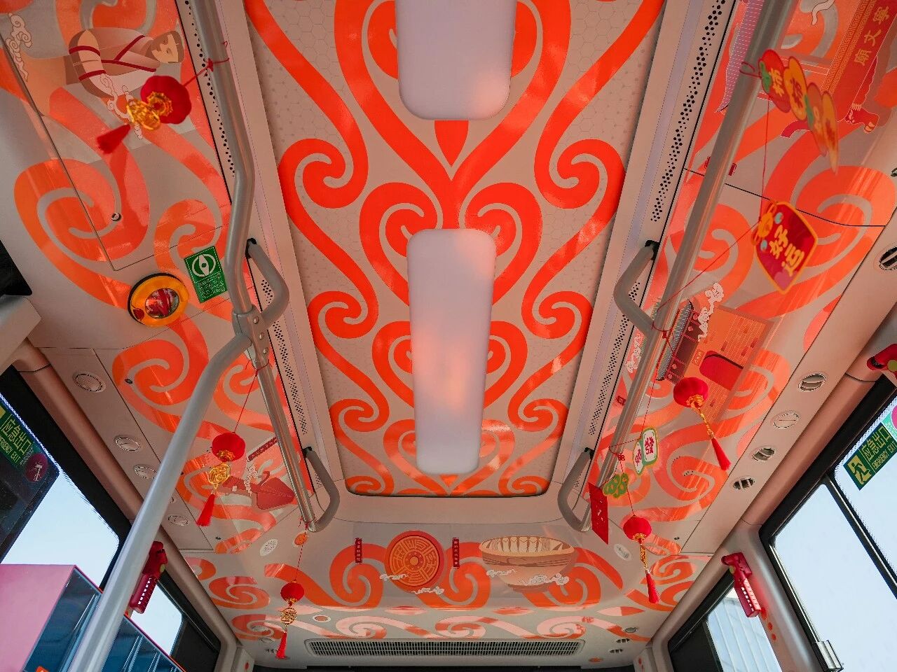 车厢内饰打造沉浸式文化空间,将建筑意象、民俗故事、文旅特色融为一体,同时搭载文创展示与售卖功能,构建 “可看、可赏、可体验、可带走” 的文旅消费闭环,让乘客在乘车途中即可沉浸式感受夏都文脉底蕴,真正实现 “交通即风景,出行即体验”。